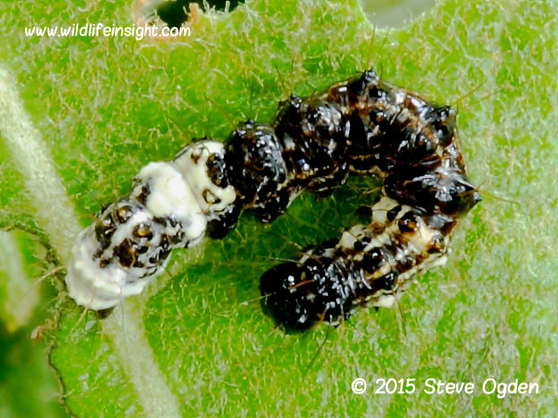 The Alder Moth (Acronicta alni) is interesting because it uses both of these strategies at different times in its life. This species is found across a large swathe of Europe and Asia, where the caterpillars feed greedily on the foliage of several tree species, especially Alder and Birch. For much of its life, the caterpillar does a pretty good impression of bird poo, but during the transition into the last stage of its caterpillar it opts for a completely different outfit. Gone is the bird poo disguise, in its place a classic warning signal of bold black and yellow stripes…”